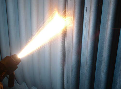 我公司嚴格按照招標文件要求進行施工,噴塗方式采用超音速電弧噴塗,噴塗工藝:準備工作(包括管表麵的預處理:堆焊處打磨、焊點打磨等以及應達到的要求)—被噴塗表麵淨化粗化處理(噴砂)—清掃—噴過渡層—噴工作層—驗收。