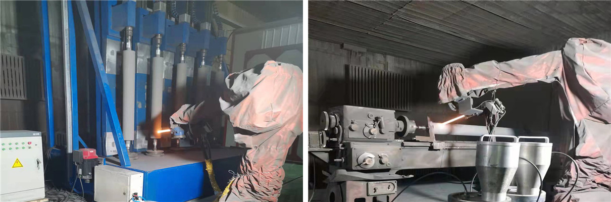 濟南天盟新材料科技有限公司引進自動噴塗機器人,分配在各熱噴塗生產車間,以保證塗層質量,提高生產效率。歡迎廣大客戶到廠參觀考察。